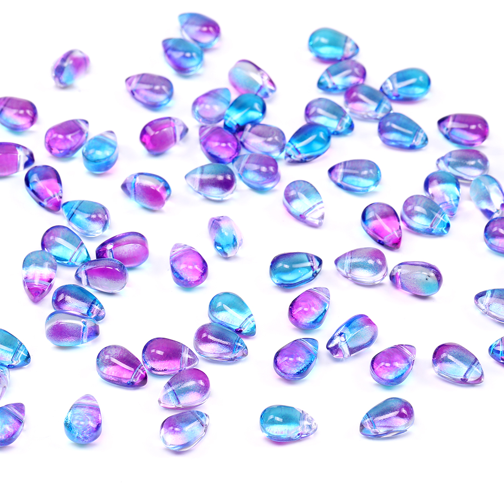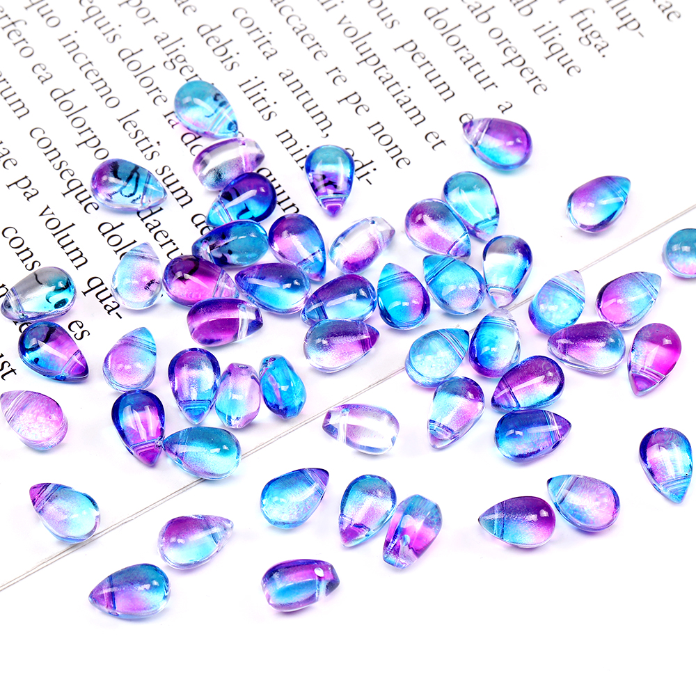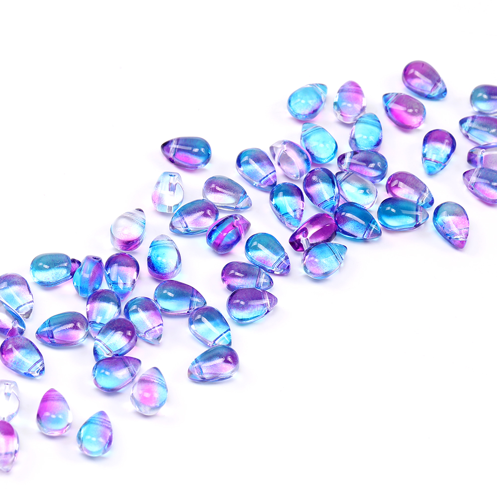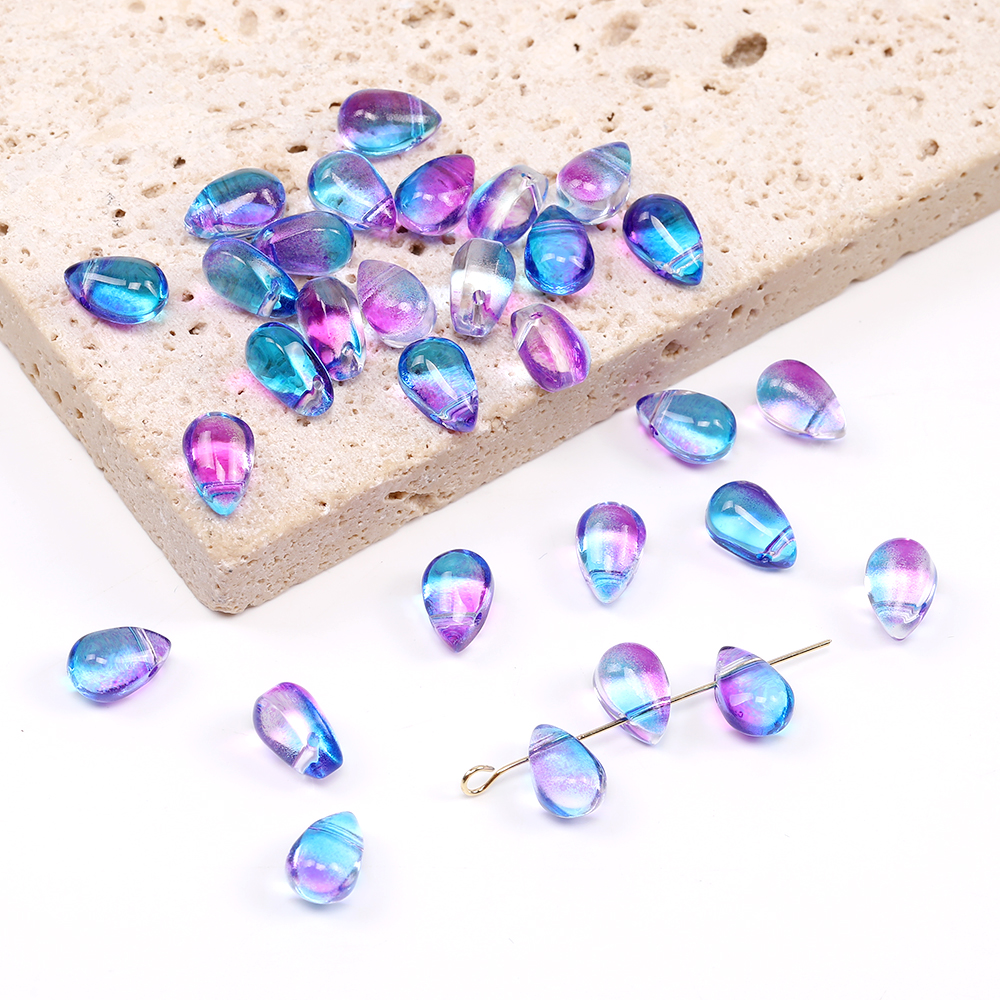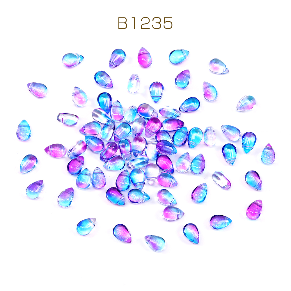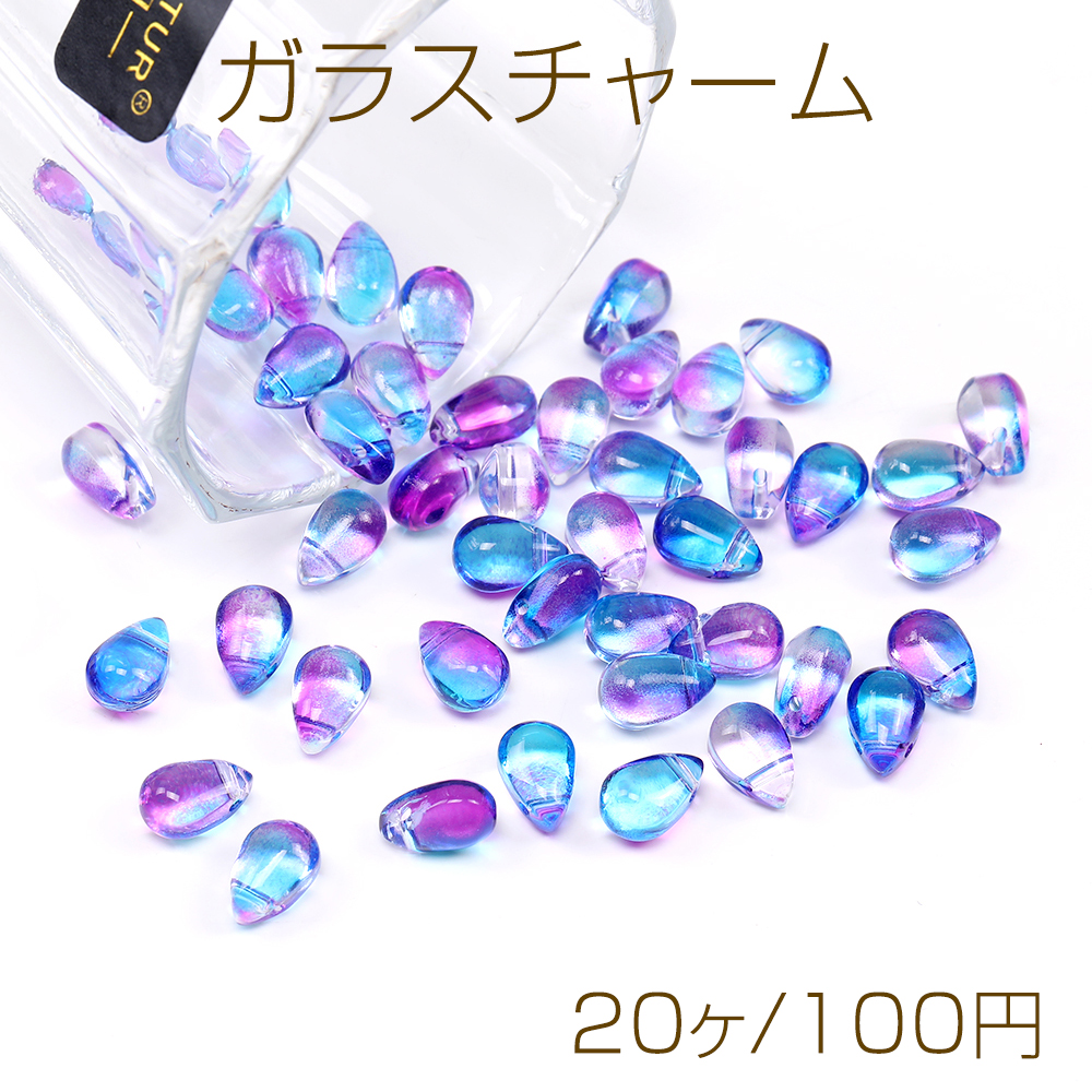 ガラスチャーム グラデーションガラスチャーム しずく型 横穴 6×9mm オーロラブルー(20ヶ)