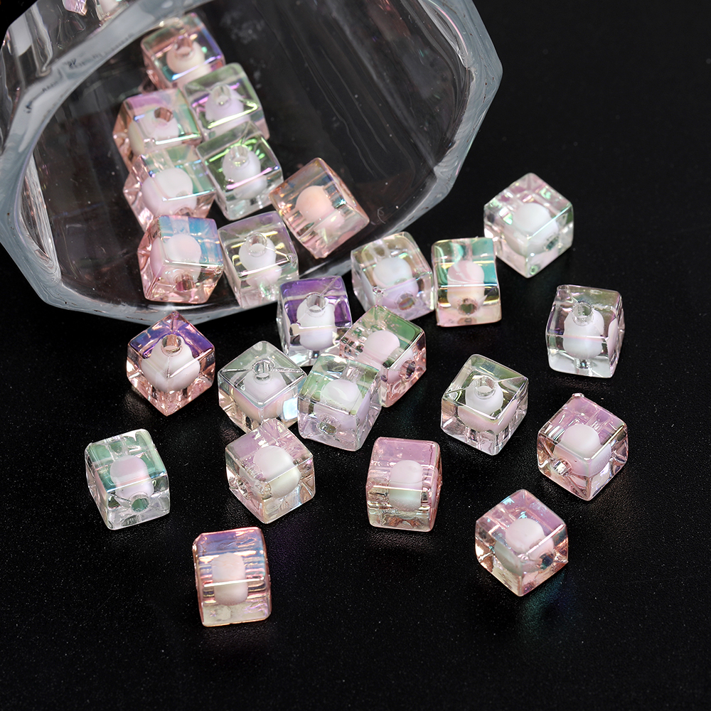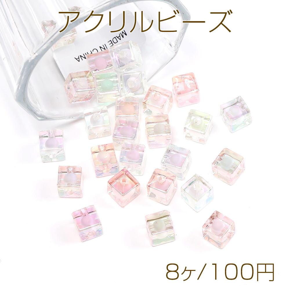 アクリルビーズ オーロラビーズ キューブ型 7×7mm(8ヶ)
