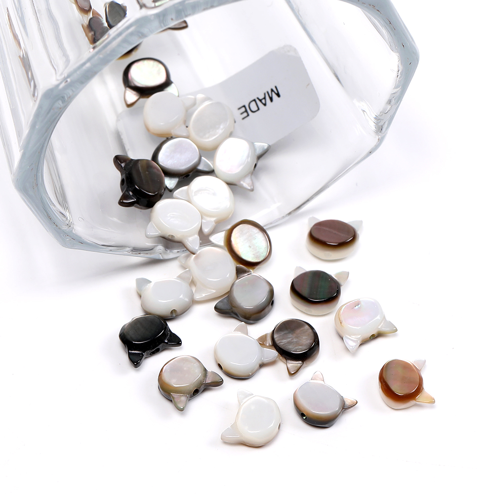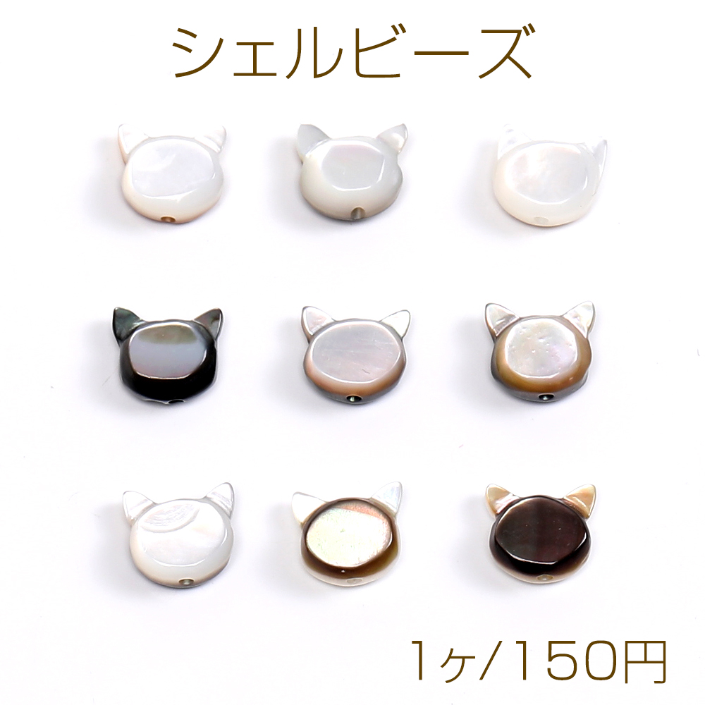 シェルビーズ 天然黒蝶貝ビーズ 猫 7.5×6.7mm(1ヶ)