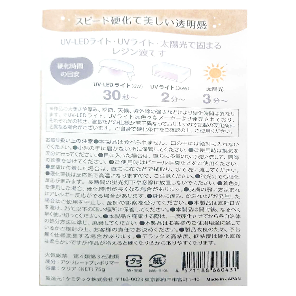 日本製レジン液 ケミテック クラフトアレンジ デコール デラックス高粘度タイプ クリア 75g スリムボトル 大容量