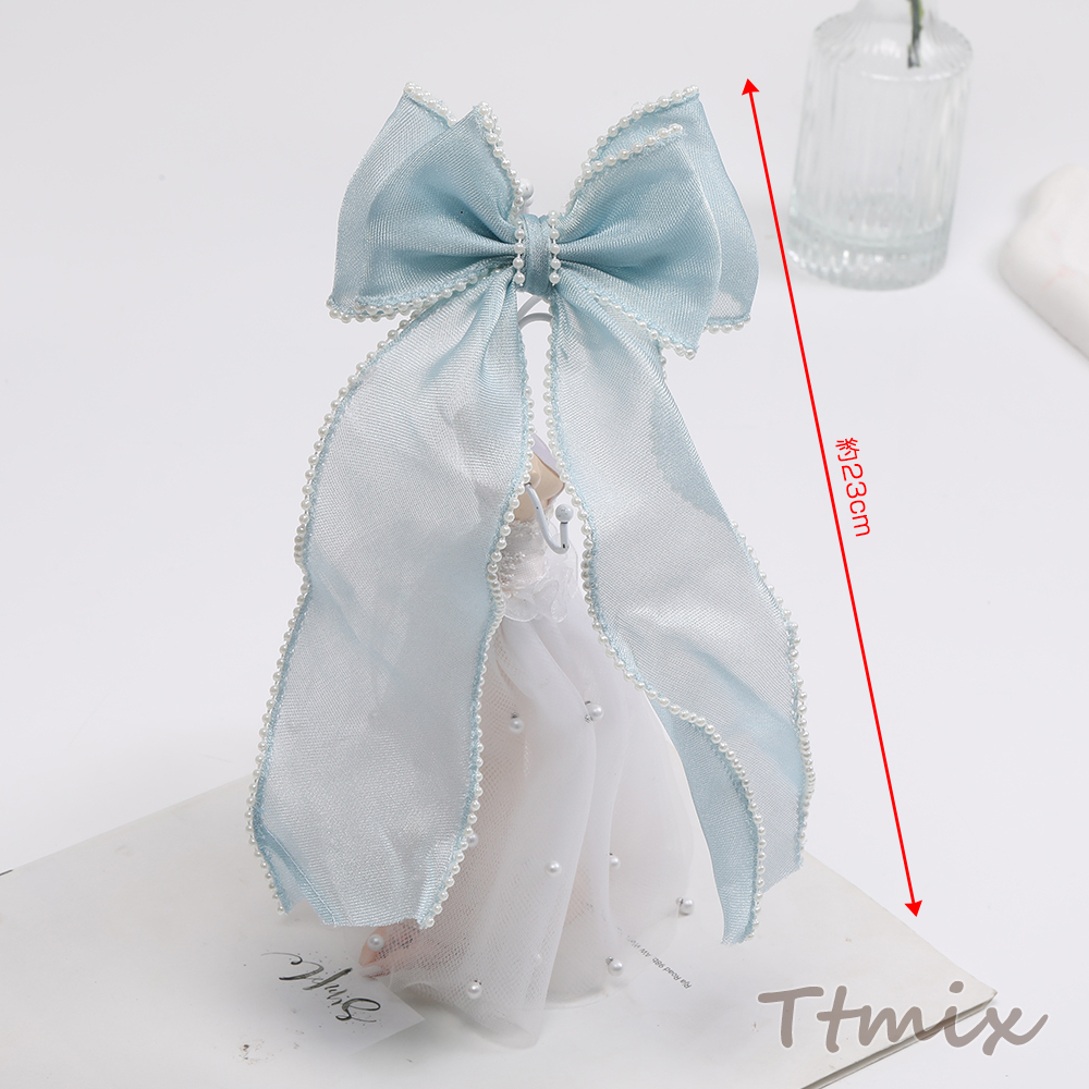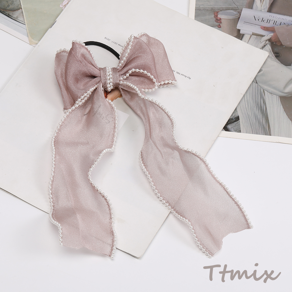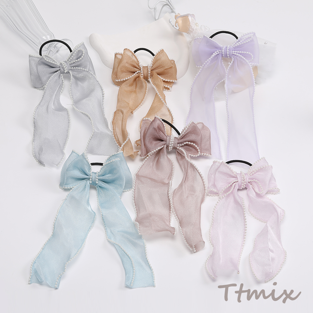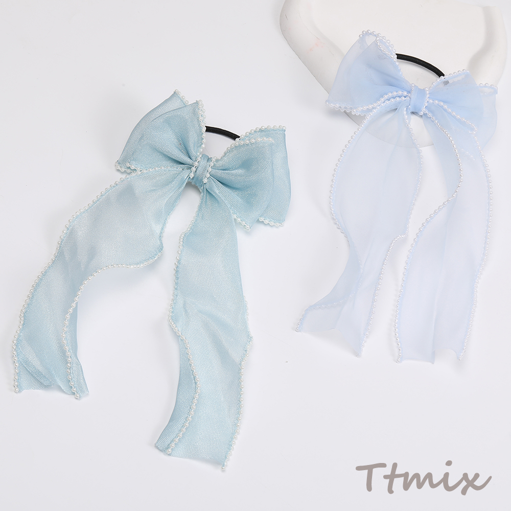 パール付きオーガンジーリボン付きヘアゴム 26cm(1ヶ)