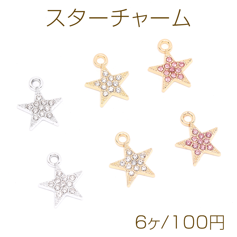 スターチャーム ラインストーン付き 12.5×15mm(6ヶ)