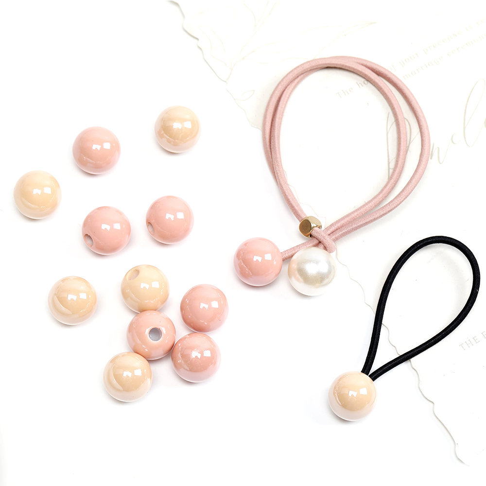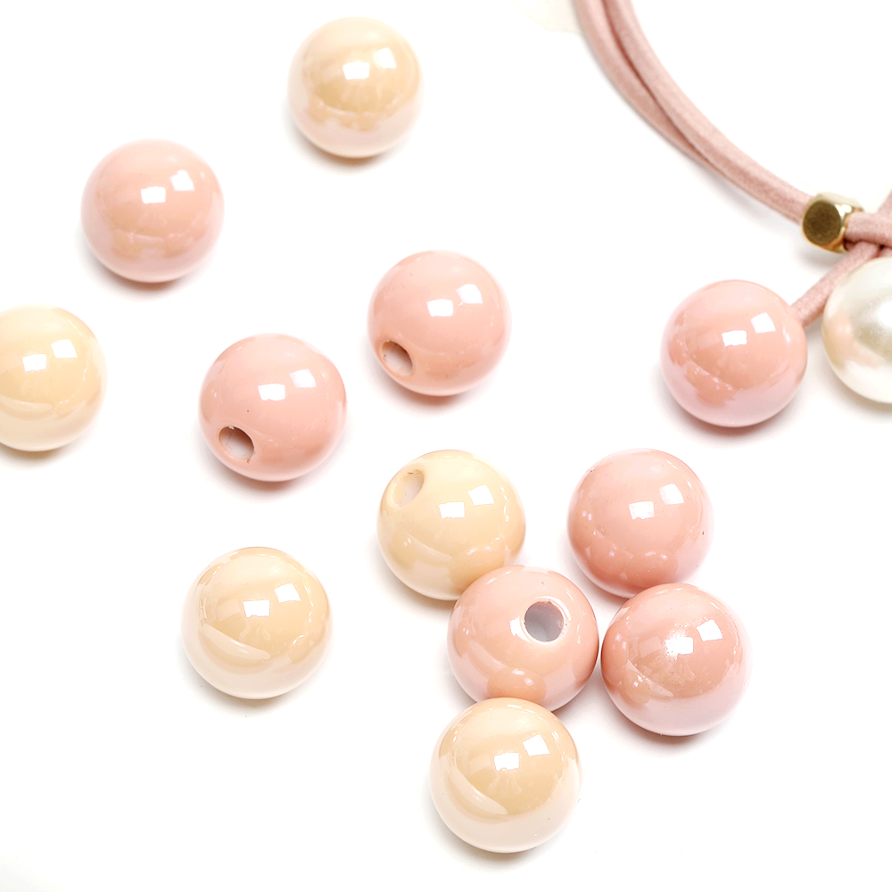 ヘアゴム用ビーズ 片穴 丸玉 14mm オーロラカラー(4ヶ)