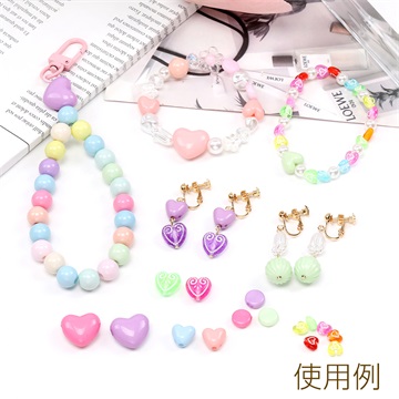 アクリルビーズ ハート型 11×13mm ミックス パステルカラー 20g(約36ヶ)