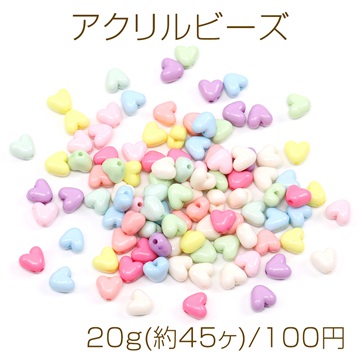 アクリルビーズ ハート型 10×10.5mm ミックス パステルカラー 20g(約45ヶ)