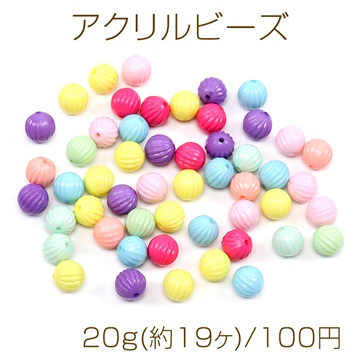 アクリルビーズ 筋入り丸玉 12mm ミックス キャンディーカラー 20g(約19ヶ)