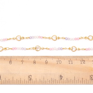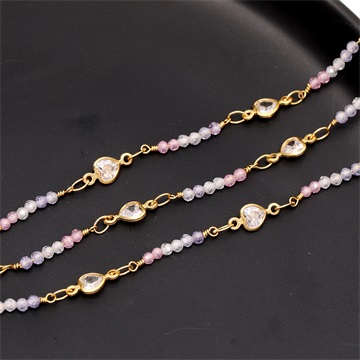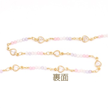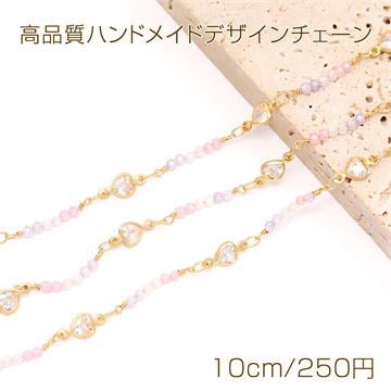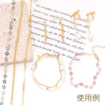 高品質ハンドメイドデザインチェーン ガラスビーズ 2mm ゴールド(10cm)