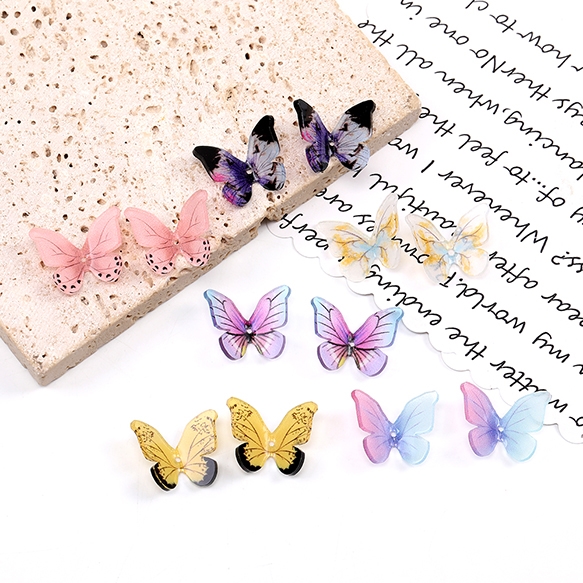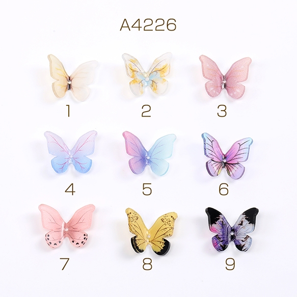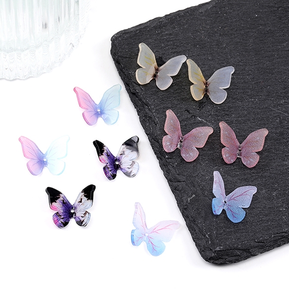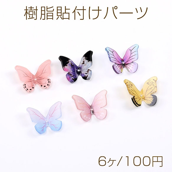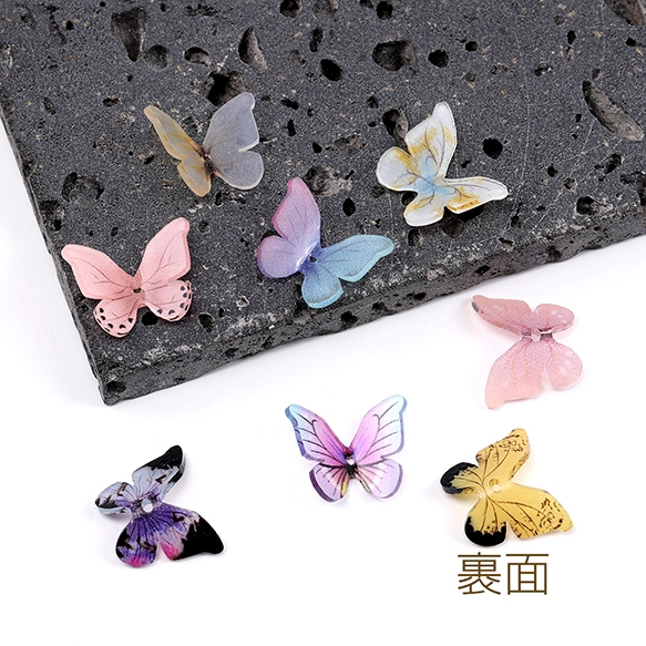樹脂貼付けパーツ 樹脂カボション 蝶 穴あり 15×18mm グラデーションカラー