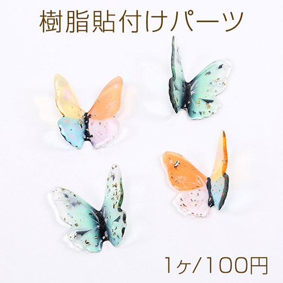 樹脂貼付けパーツ 樹脂カボション 蝶 34.5×40mm グラデーションカラー(1ヶ)