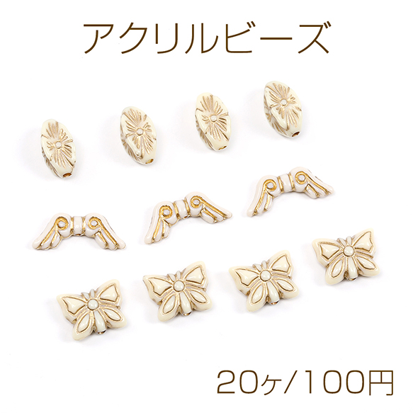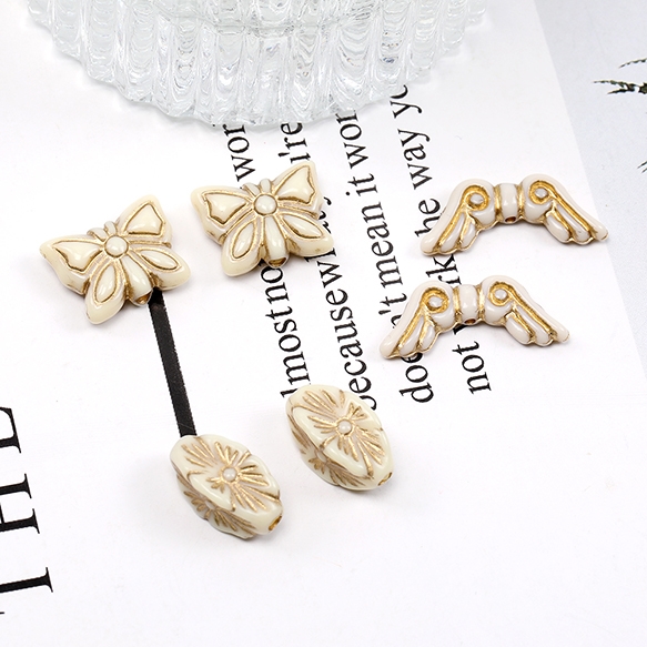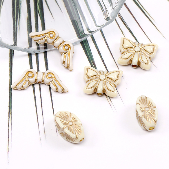 アクリルビーズ アンティーク調アクリルビーズ ひし形 蝶 天使の羽