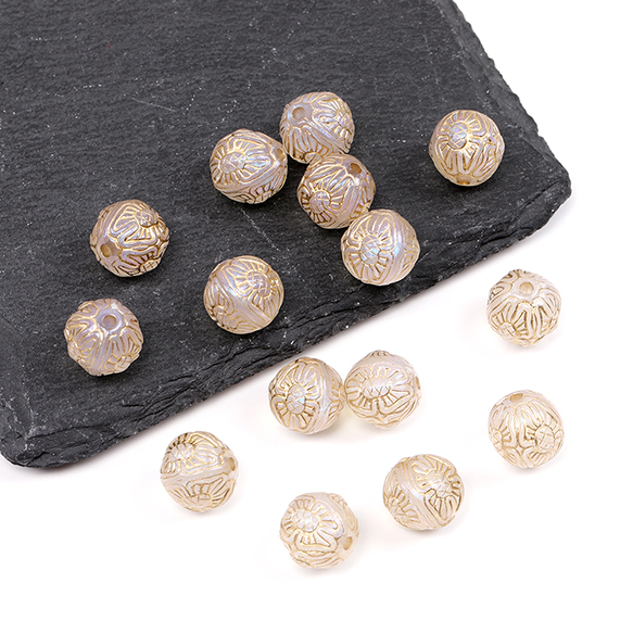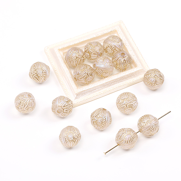 アクリルビーズ アンティーク調アクリルビーズ 丸玉 模様入り 11.5mm(20ヶ)