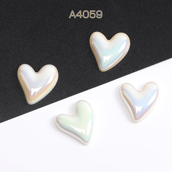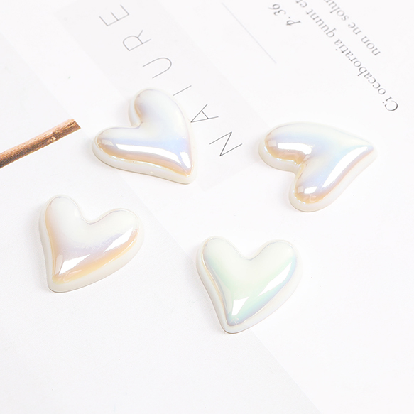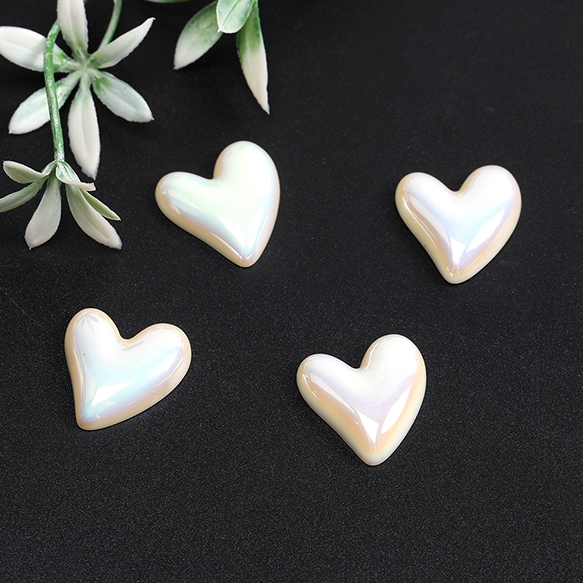 貼付けパーツ アクリル貼付けパーツ アクリルカボション ハート型 21×23mm オーロラアイボリー(10ヶ)