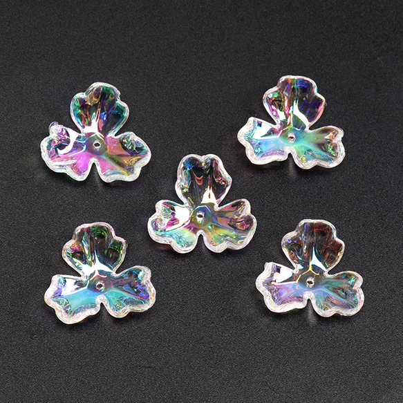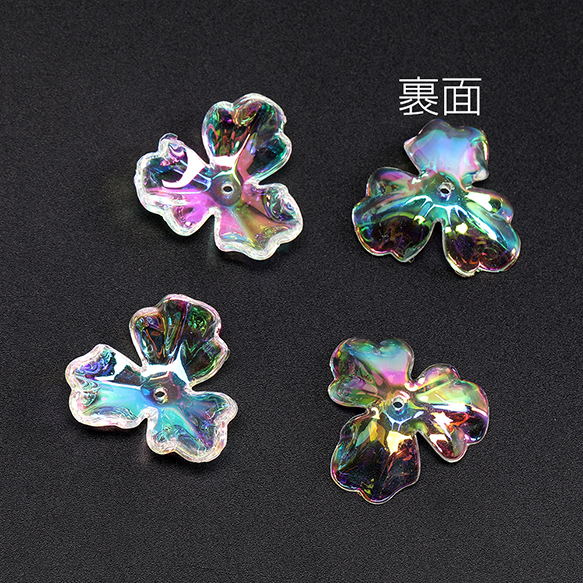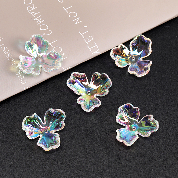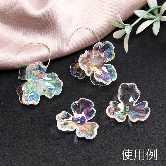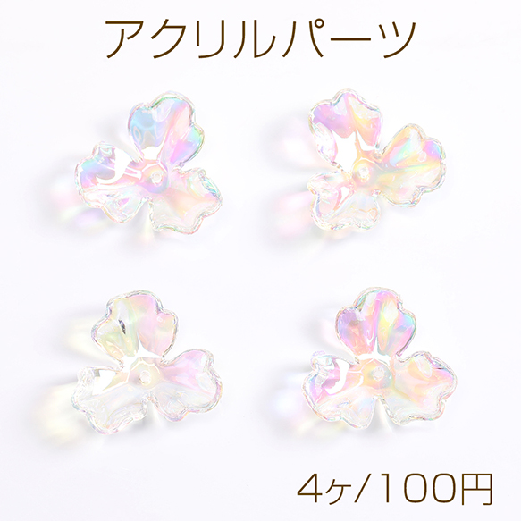 アクリルパーツ フラワー 3弁花 穴あり 26×26mm オーロラクリア(4ヶ)