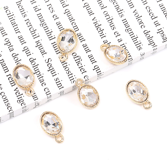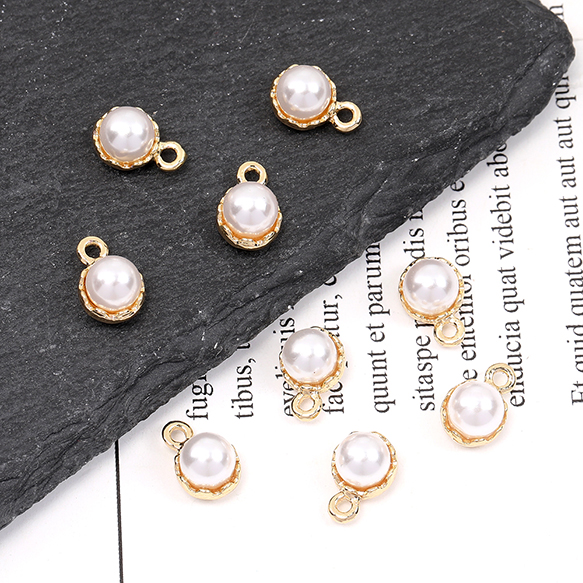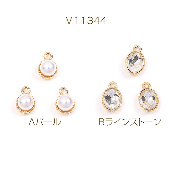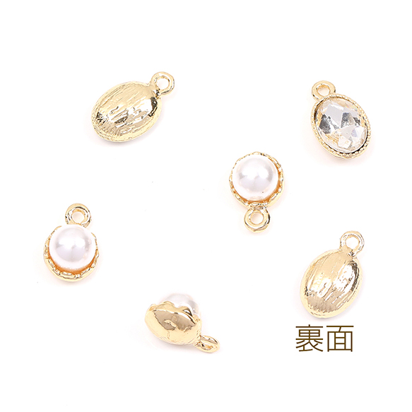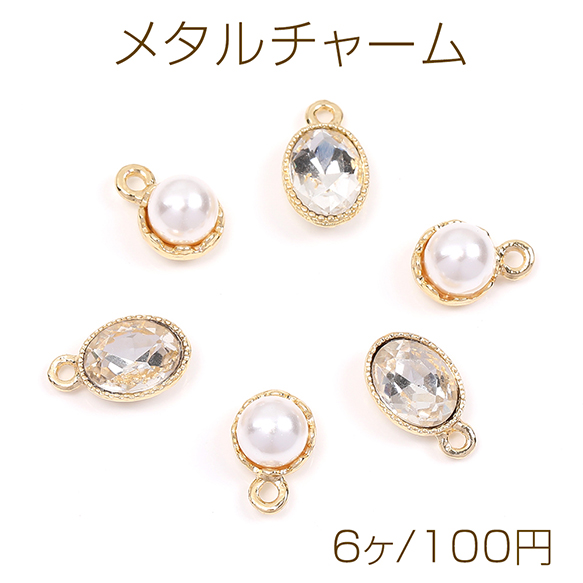 メタルチャーム パール付きチャーム ラインストーン付きチャーム ラウンド オーバル ゴールド(6ヶ)