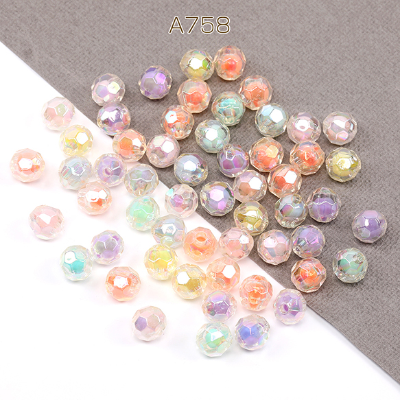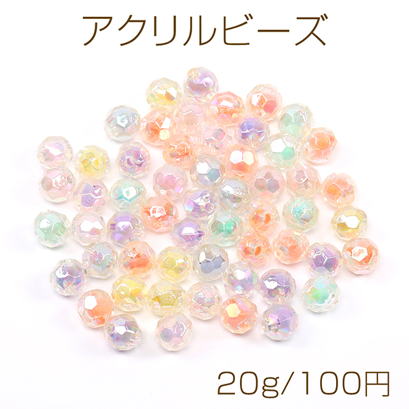 アクリルビーズ クリアビーズ オーロラビーズ ラウンドカット 9.5mm キャンディーカラー ミックスカラー(20g)