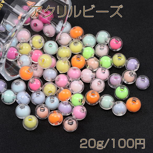 アクリルビーズ クリアビーズ オーロラビーズ ラウンド 8mm キャンディーカラー ミックスカラー(20g)