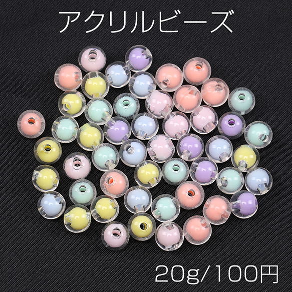 アクリルビーズ クリアビーズ オーロラビーズ ラウンド 9mm キャンディーカラー ミックスカラー(20g)
