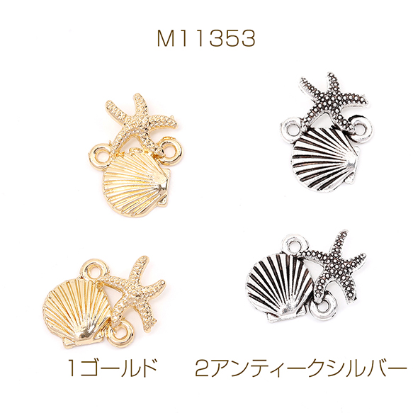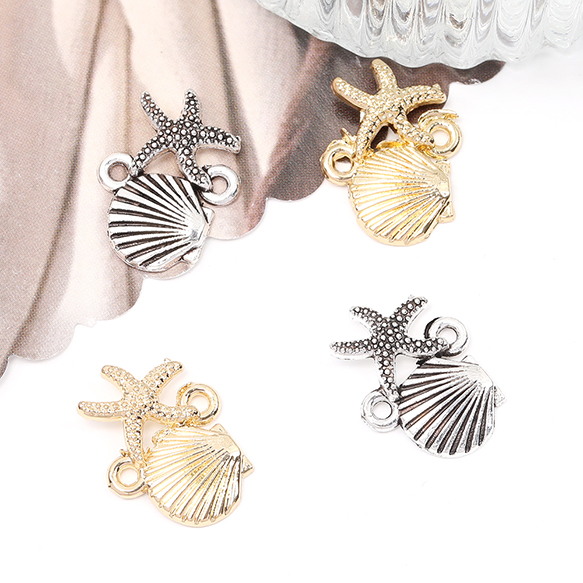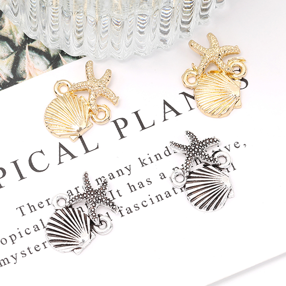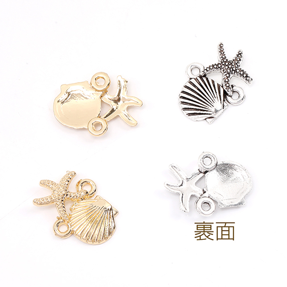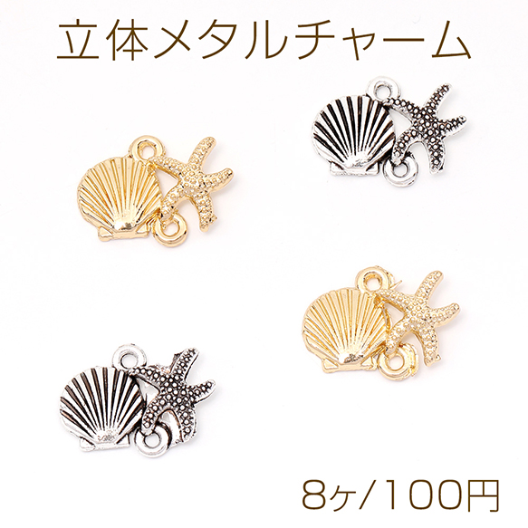 立体メタルチャーム コネクターチャーム ヒトデ&貝 2カン付き 13×18mm(8ヶ)