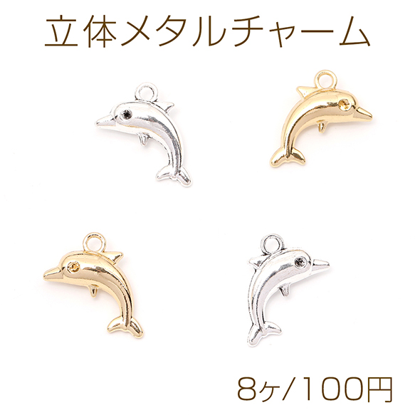 立体メタルチャーム イルカ 11×18mm(8ヶ)