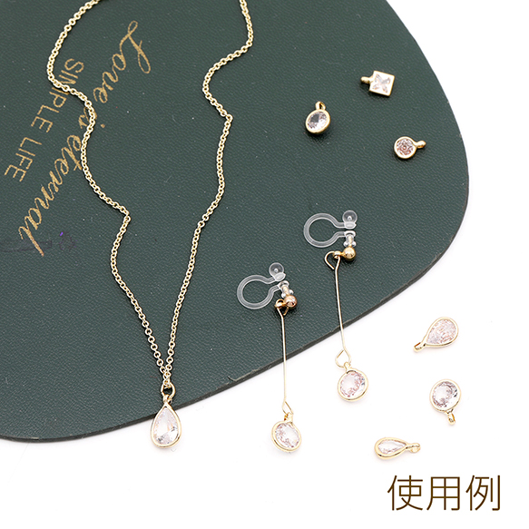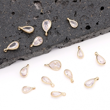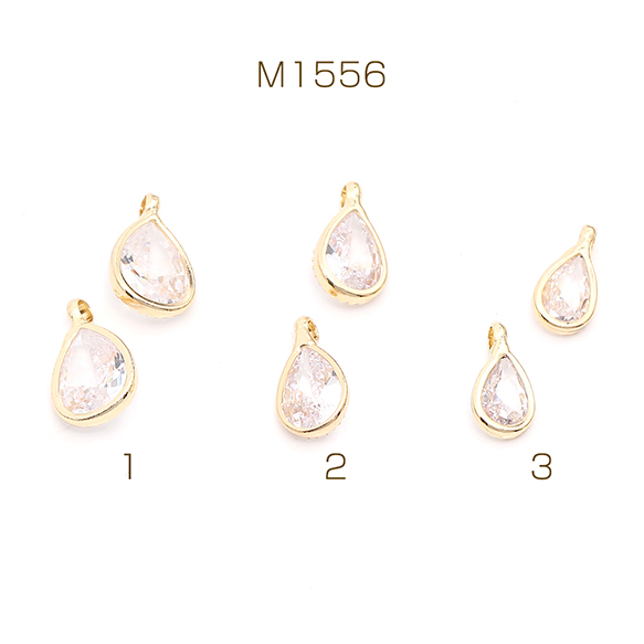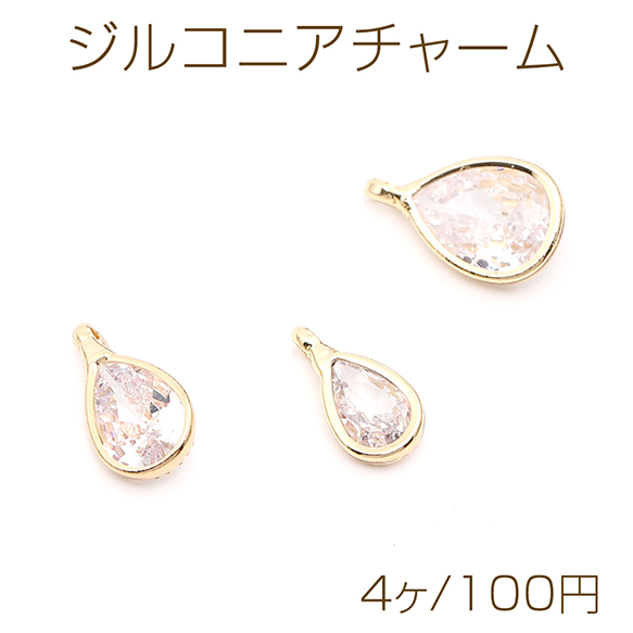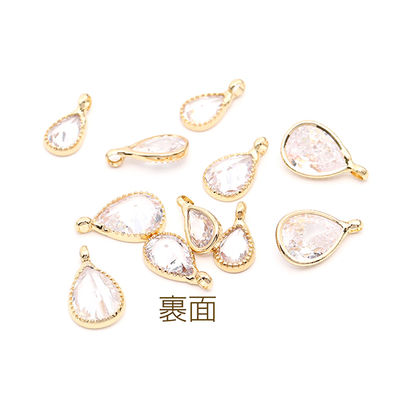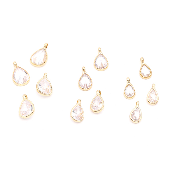 ジルコニアチャーム しずく型 ゴールド×クリスタル