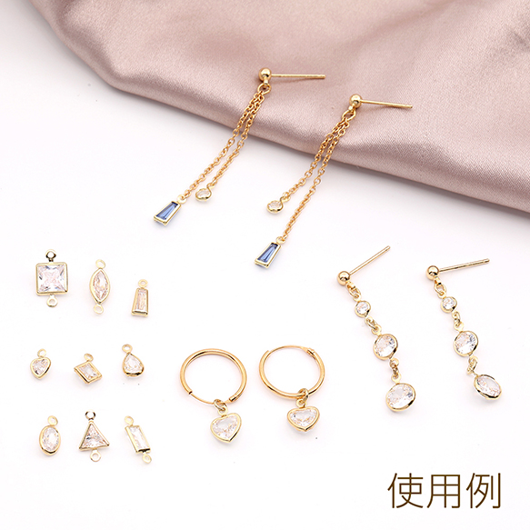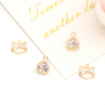 ジルコニアチャーム ハート型 ゴールド×クリスタル