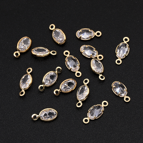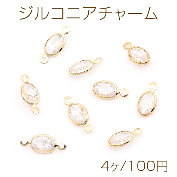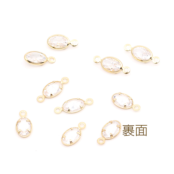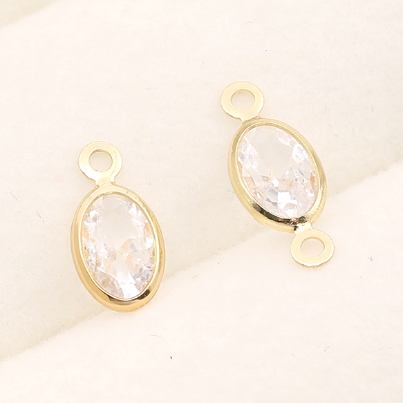 ジルコニアチャーム オーバル ゴールド×クリスタル