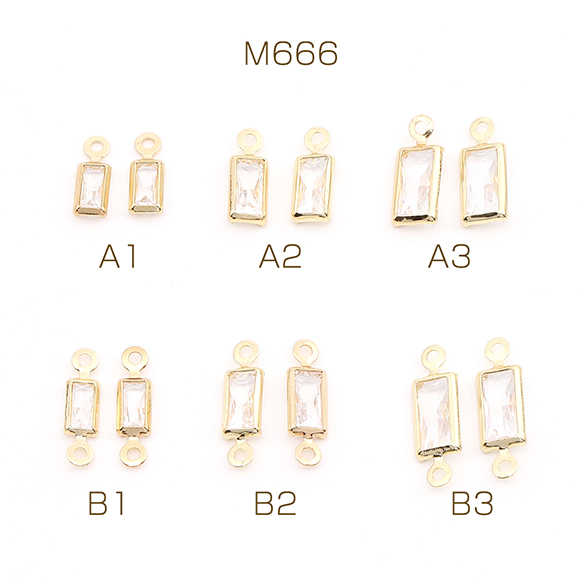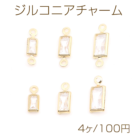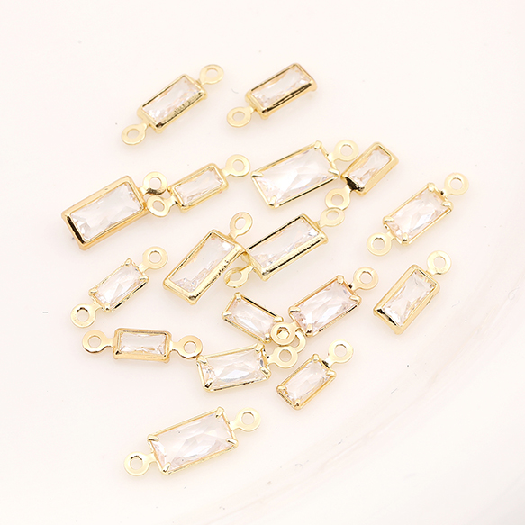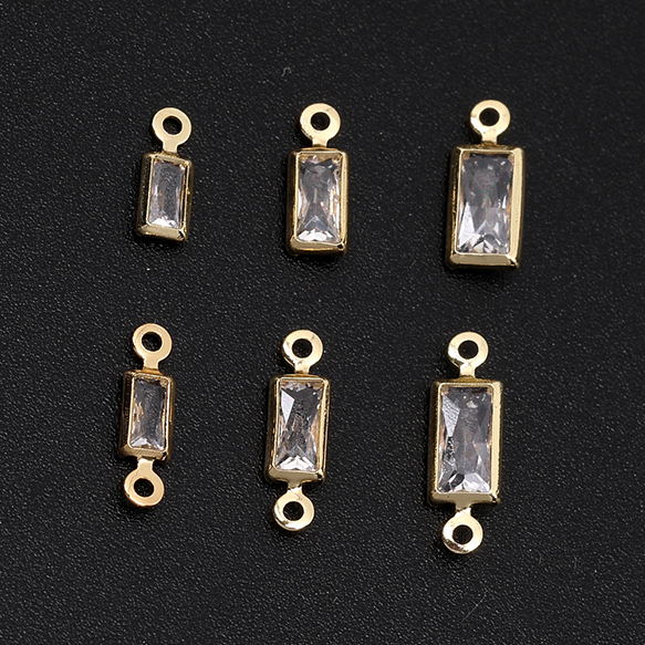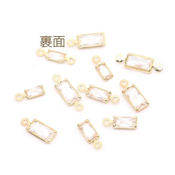 ジルコニアチャーム 長方形型 ゴールド×クリスタル