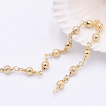 ガラスビーズチェーン ハンドメードチェーン ラウンドカット 2mm ゴールド(10cm)