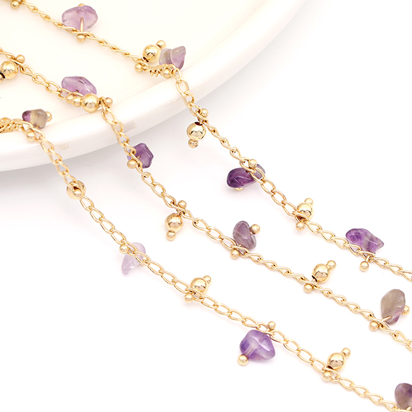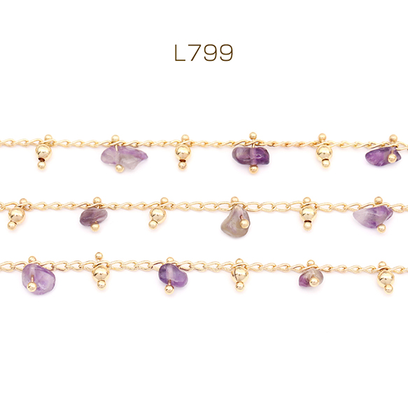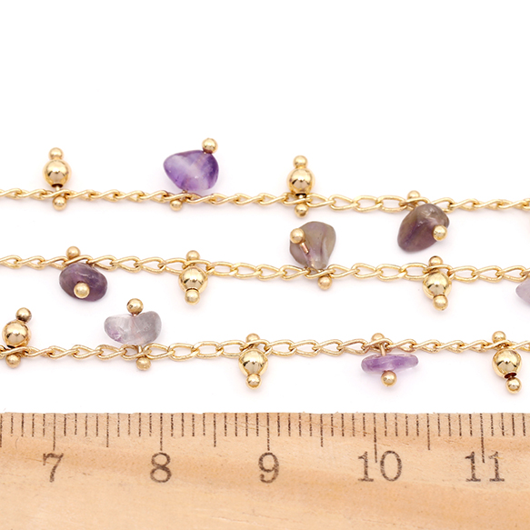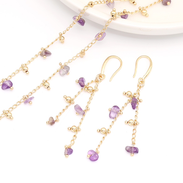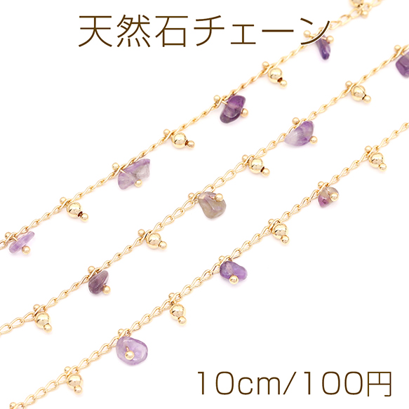 天然石チェーン ハンドメードチェーン さざれ アメジスト 3-5mm ゴールド(10cm)