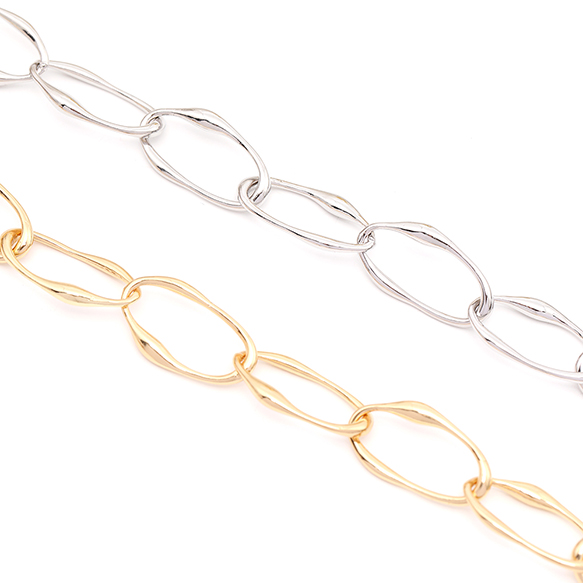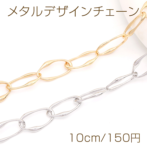 メタルデザインチェーン ハンドメードチェーン 不規則オーバル 11×21mm(10cm)