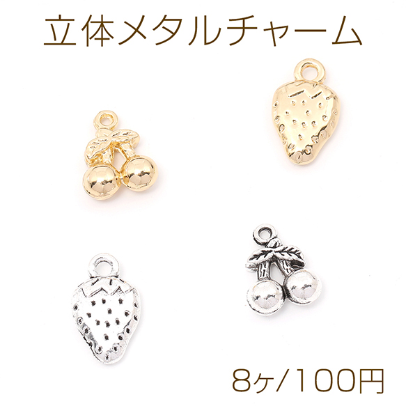 立体メタルチャーム いちご さくらんぼ(8ヶ)