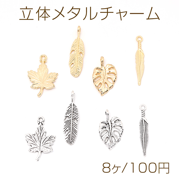 立体メタルチャーム リーフ カエデの葉 羽(8ヶ)