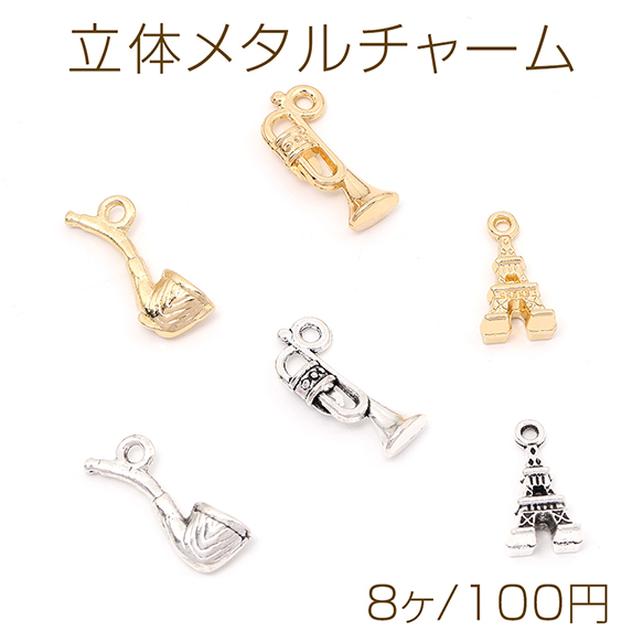 立体メタルチャーム エッフェル塔 喫煙パイプ トランペット(8ヶ)