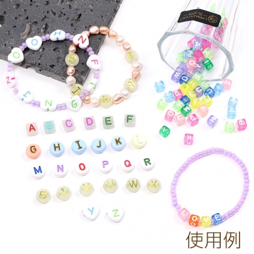 アルファベットビーズアソート 26文字×2個 アクリルビーズ ハート型 10.5×11.5mm ミックスカラー ホワイト(52ヶ)