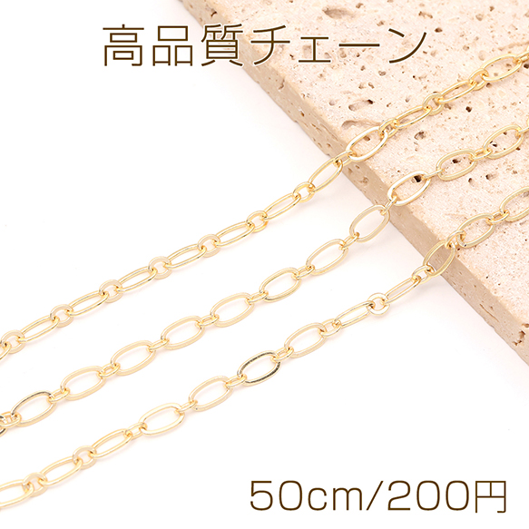 高品質チェーン メタルデザインチェーン 4×7.5mm ゴールド(50cm)