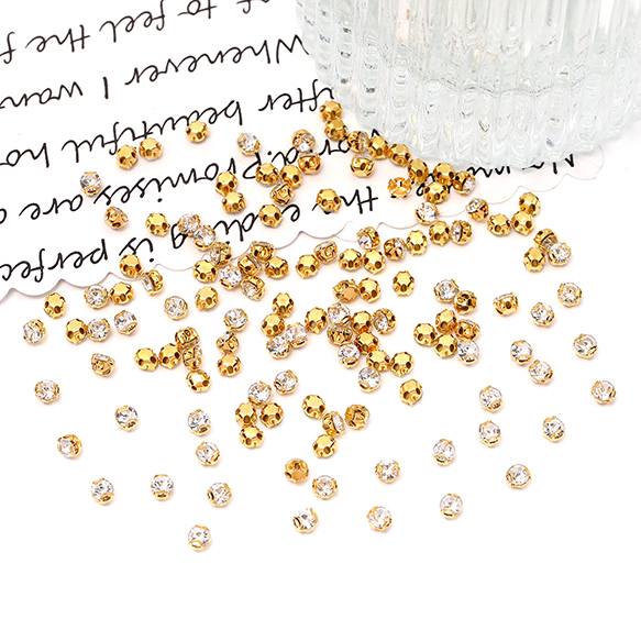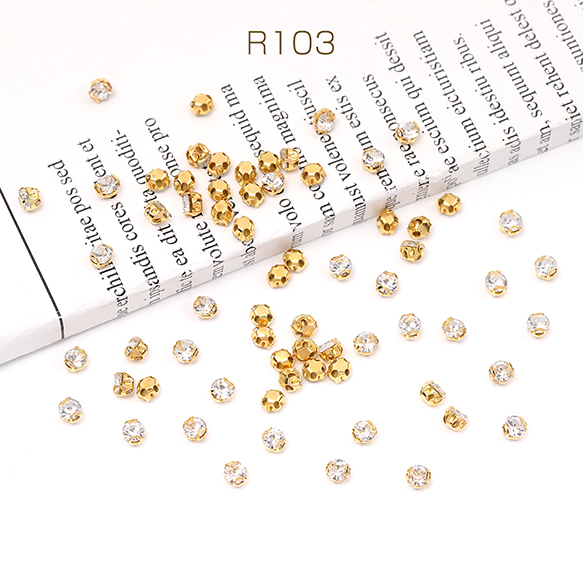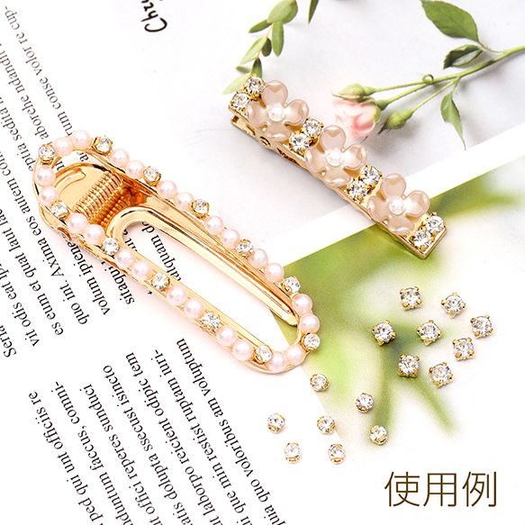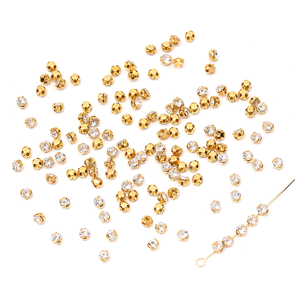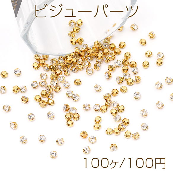 ビジューパーツ 3mm ゴールド×クリスタル(100ヶ)