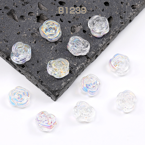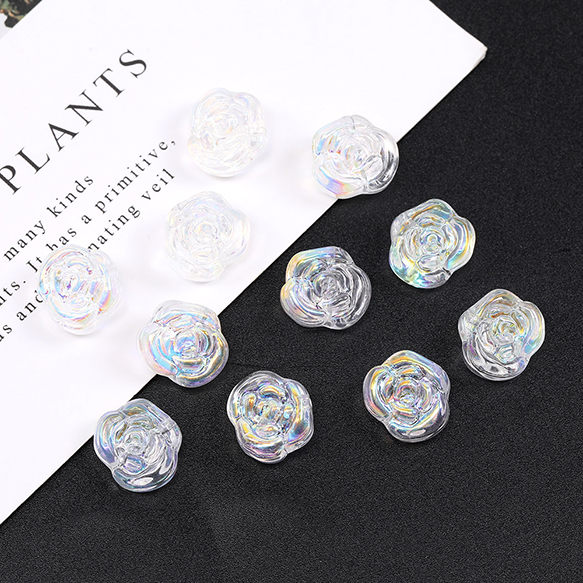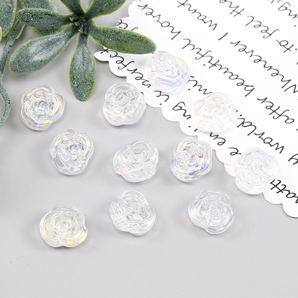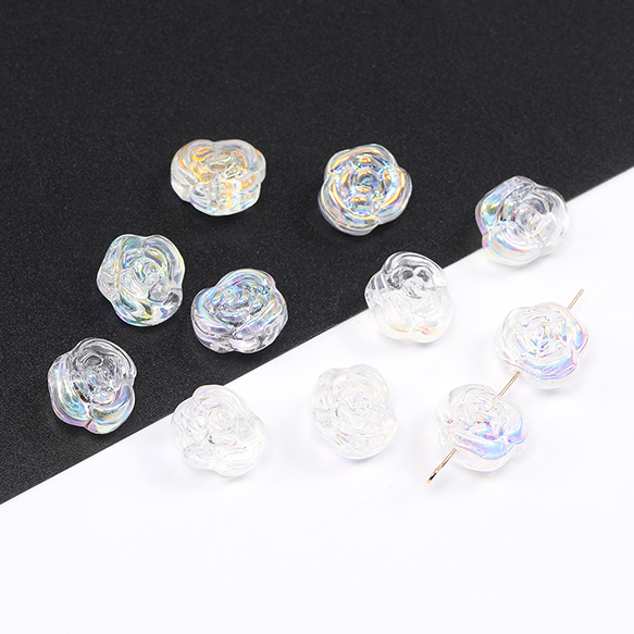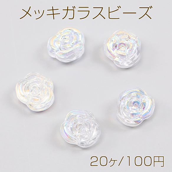 メッキガラスビーズ バラ 12×13.5mm オーロラクリア(20ヶ)