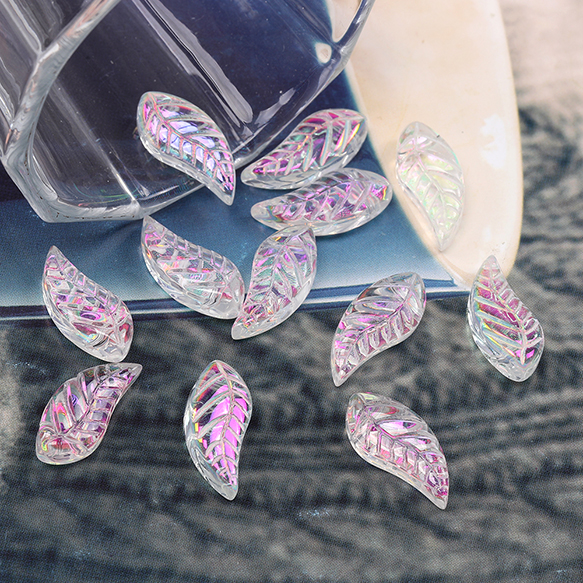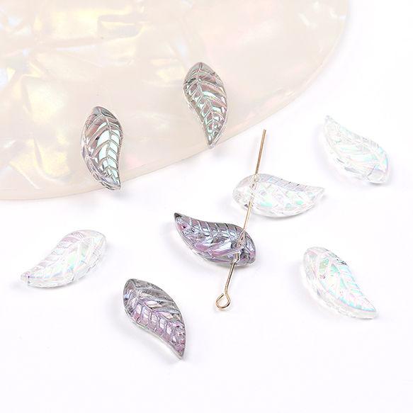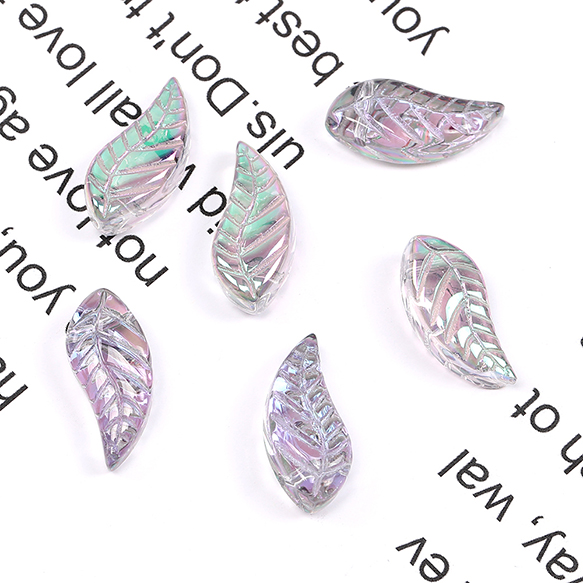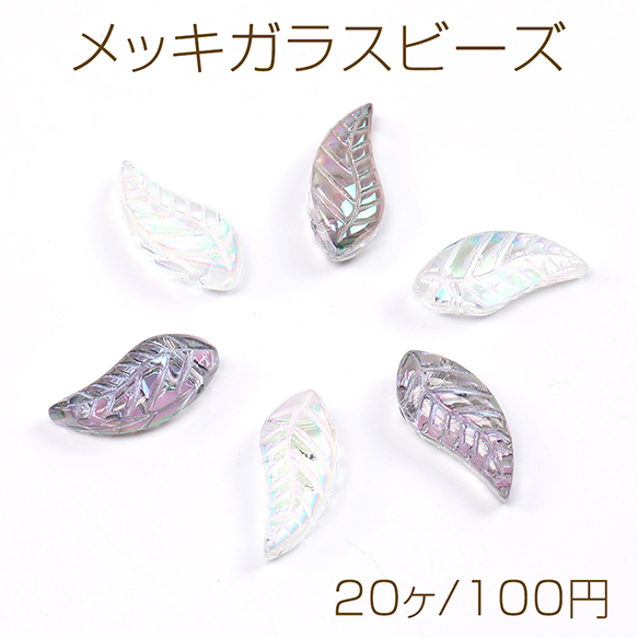 メッキガラスビーズ リーフ 7.5×18mm オーロラカラー(20ヶ)