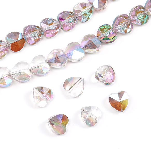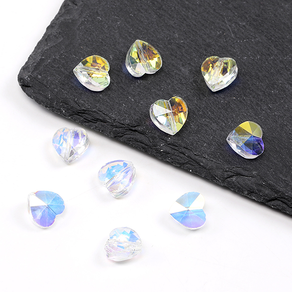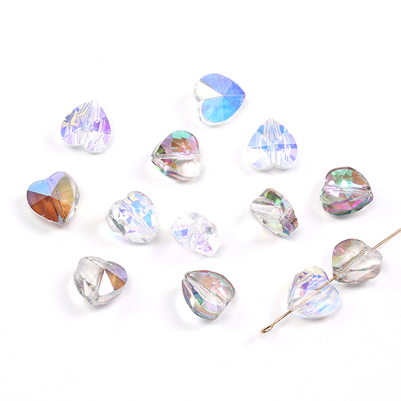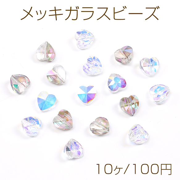 メッキガラスビーズ ハート型 10mm オーロラカラー(10ヶ)