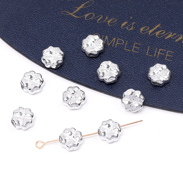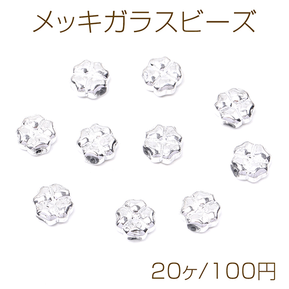 メッキガラスビーズ クローバー 8mm ロジウム(20ヶ)