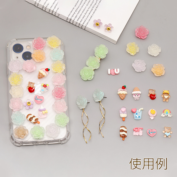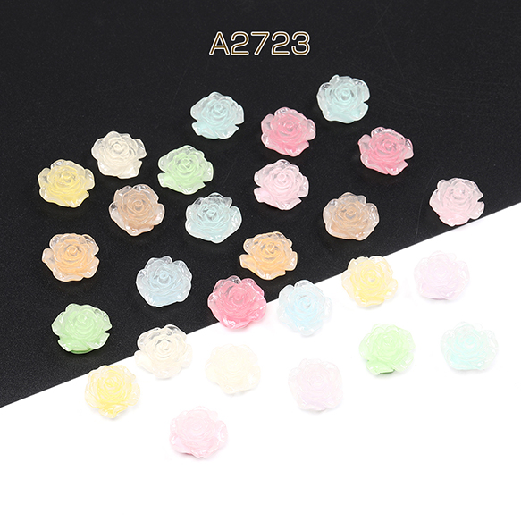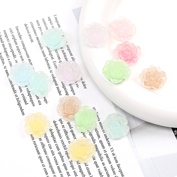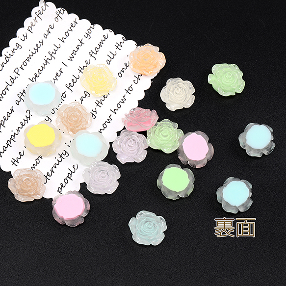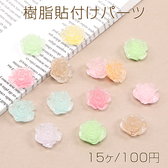 樹脂貼付けパーツ 樹脂カボション バラ 19mm ミックスカラー(15ヶ)
