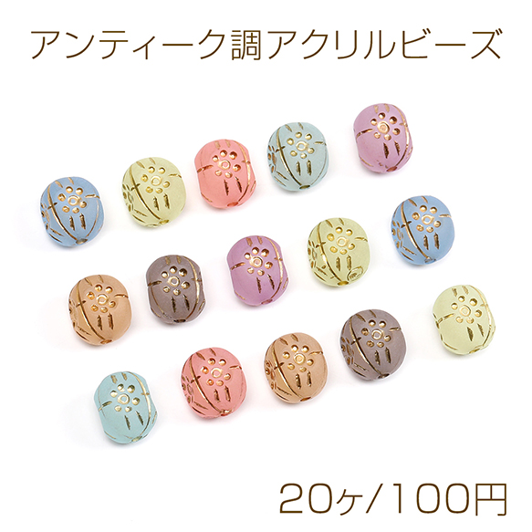 アンティーク調アクリルビーズ フロスト加工 オーバル 9.5×12mm(20ヶ)