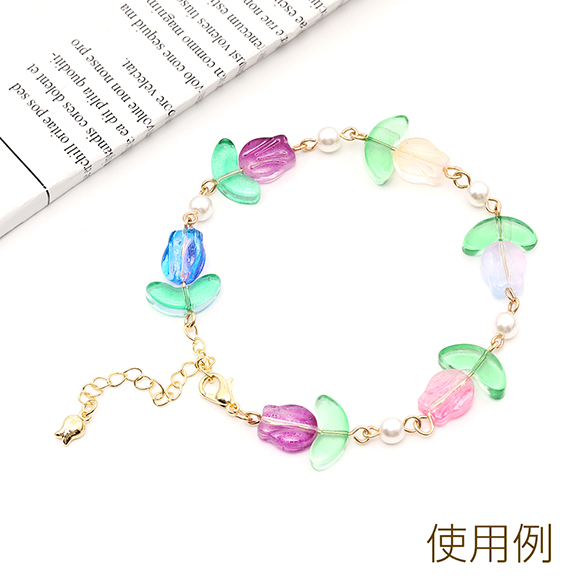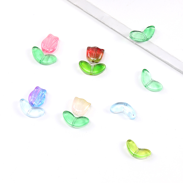 ガラスビーズ チューリップの葉 6.5×14mm(15ヶ)