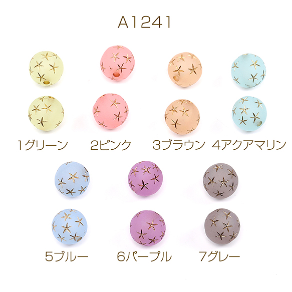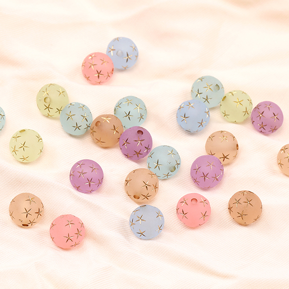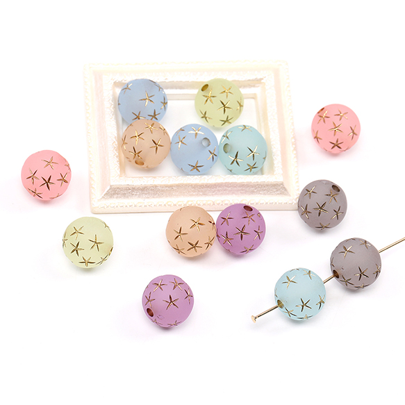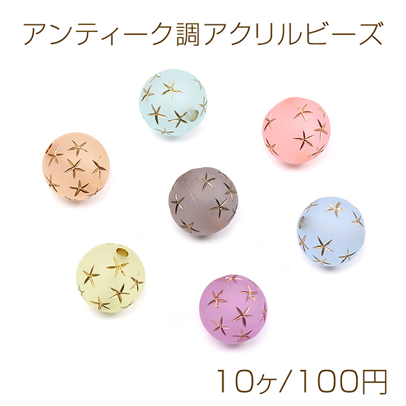 アンティーク調アクリルビーズ フロスト加工 丸玉 星柄 12mm(10ヶ)