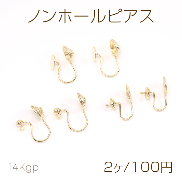 色褪せにくい14KGPゴールドメッキ ノンホールピアス(2ヶ)