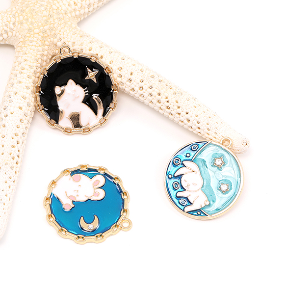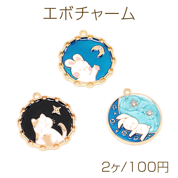 エボチャーム 丸型 猫 兎 1カン ゴールド(2ヶ)