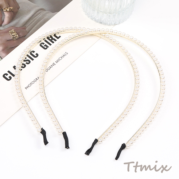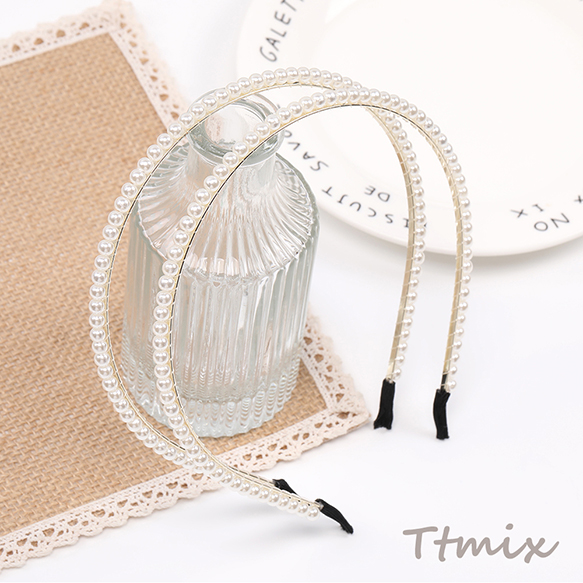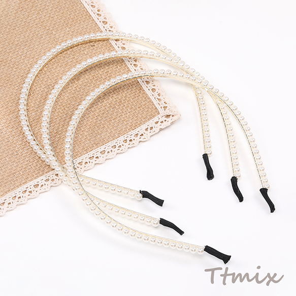 パール付きメタルカチューシャ 5mm ゴールド(1ヶ)