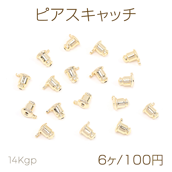色褪せにくい14KGPゴールドメッキ ピアスキャッチ 1カン 5×6mm(6ヶ)
