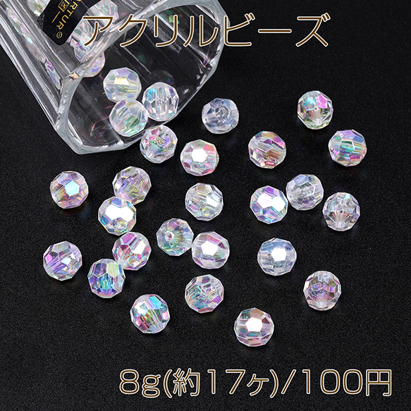 アクリルビーズ オーロラビーズ ラウンドカット 10mm クリア 8g(約17ヶ)