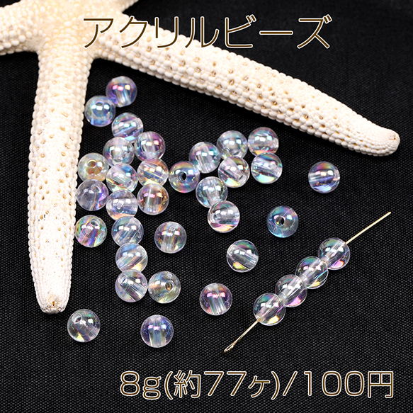 アクリルビーズ オーロラビーズ 丸玉 6mm クリア 8g(約77ヶ)